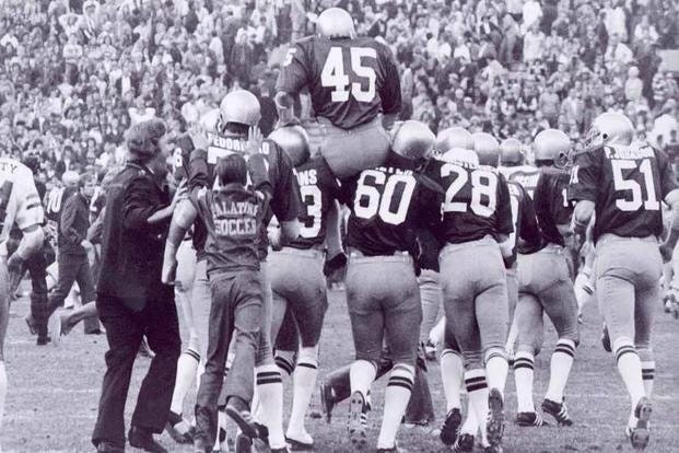 I’ve been thinking about Daniel Eugene “Rudy” Ruettiger lately, especially with Notre Dame set to play Georgia on Wednesday in the quarterfinals of the College Football Playoffs.